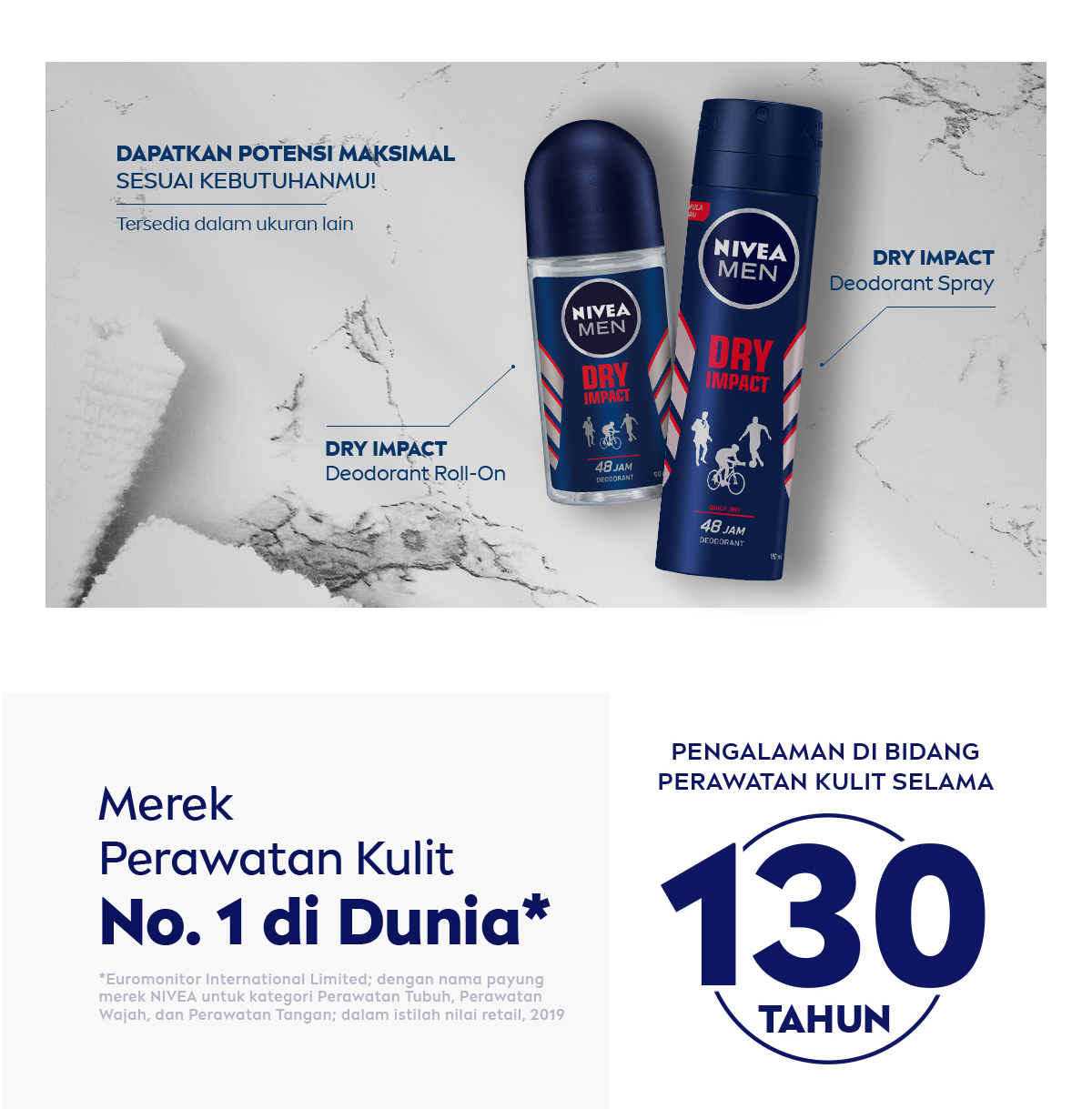 NIVEA MEN Deodorant Roll On Dry Impact 50ml - Deodoran pria anti bakteri antiperspirant anti noda baju wangi segar ketiak kering tahan lama seharian tahan keringat anti bau - Antiperspiran, tidak mengandung ethyl alkohol