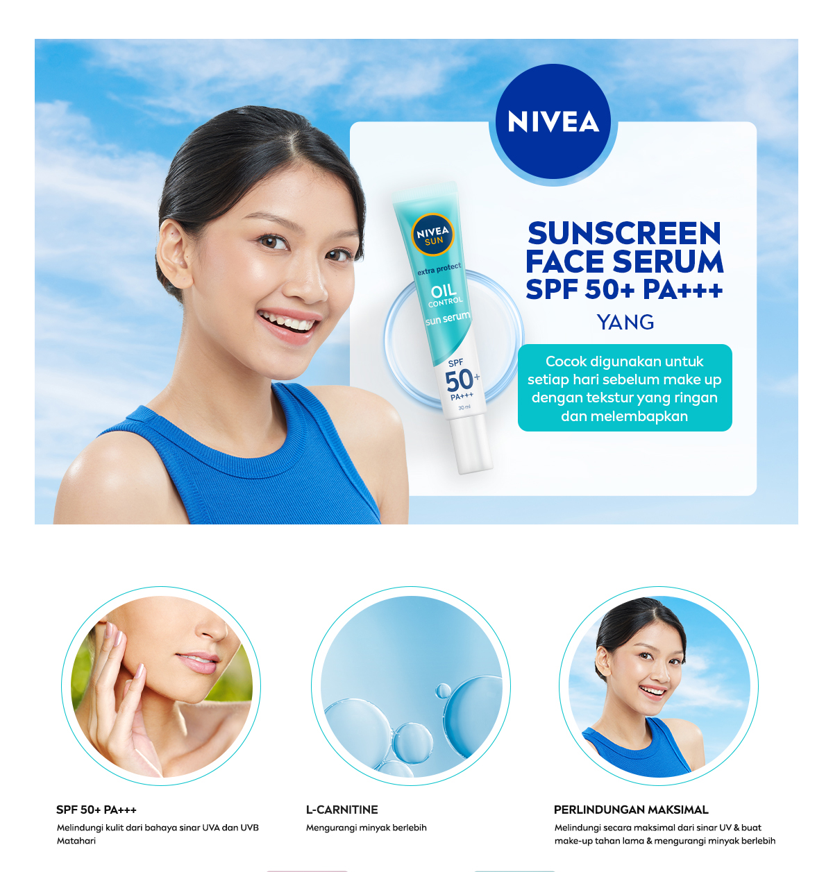 NIVEA SUN Sunscreen Face Serum Extra Protect Oil Control SPF50+ PA+++ 30ml - Sunscreen wajah serum sunblock tidak berminyak SPF UV harian lightweight gel tekstur ringan cepat meresap tidak lengket no whitecast - L-Carnitine