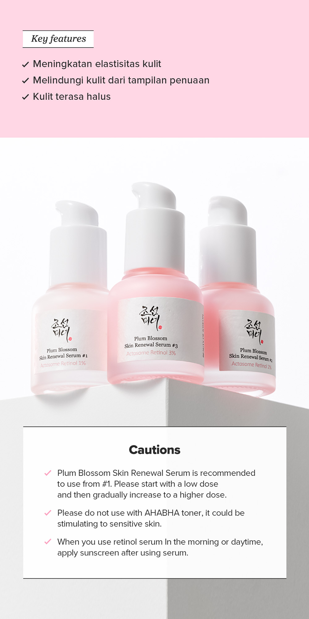 Plum Blossom Skin Renewal Serum #1 adalah serum dengan kandungan Actosome Retinol yang lembut serta lebih efektif dari retinol biasa. Dapat menyegarkan kulit, meningkatkan elastisitas kulit dan melindungi kulit dari tampilan penuaan. Serta mengandung Plum Blossom yang dapat membantu kulit terasa halus dan lembap.