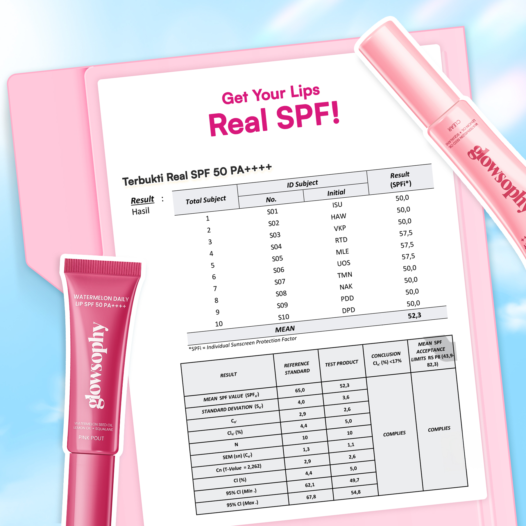 Mengandung SPF 50 PA+++ untuk melindungi bibir dari sinar UVA/UVB