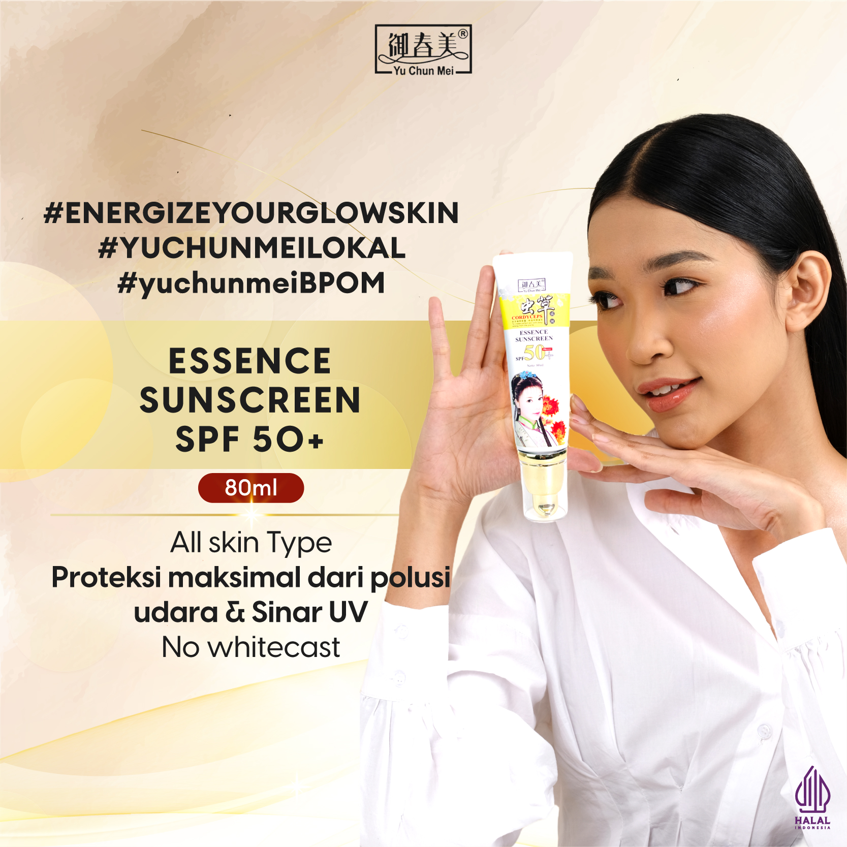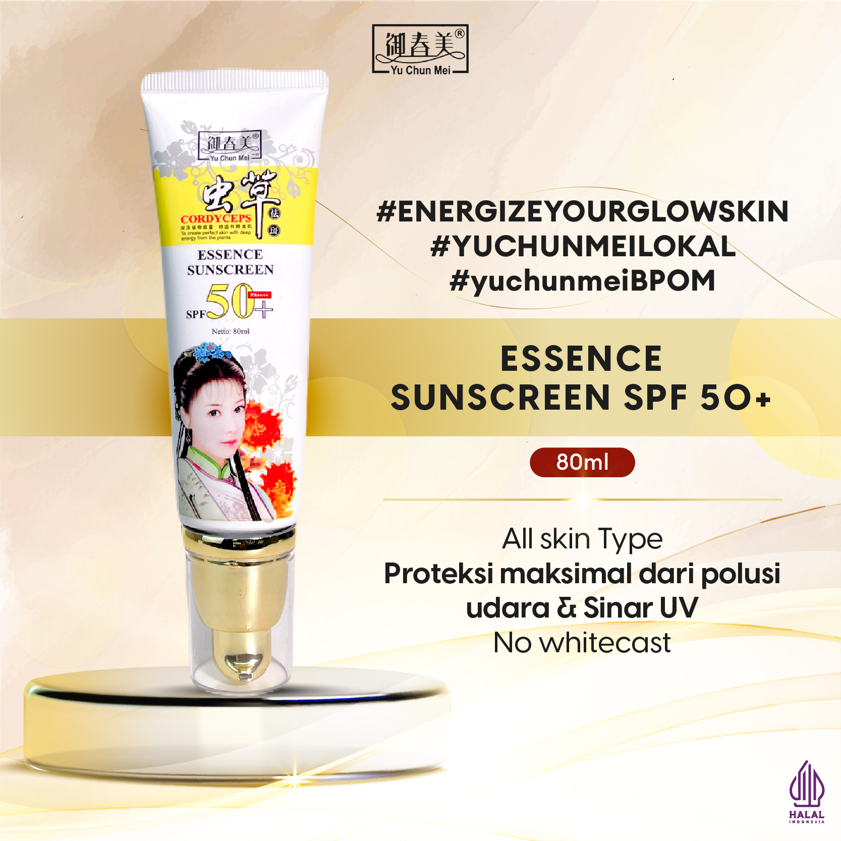 YU CHUN MEI Sunscreen UV Defender 80ml-SPF50/PA++++ With OMCX and Titanium Dioxide cocok digunakan untuk jenis kulit :