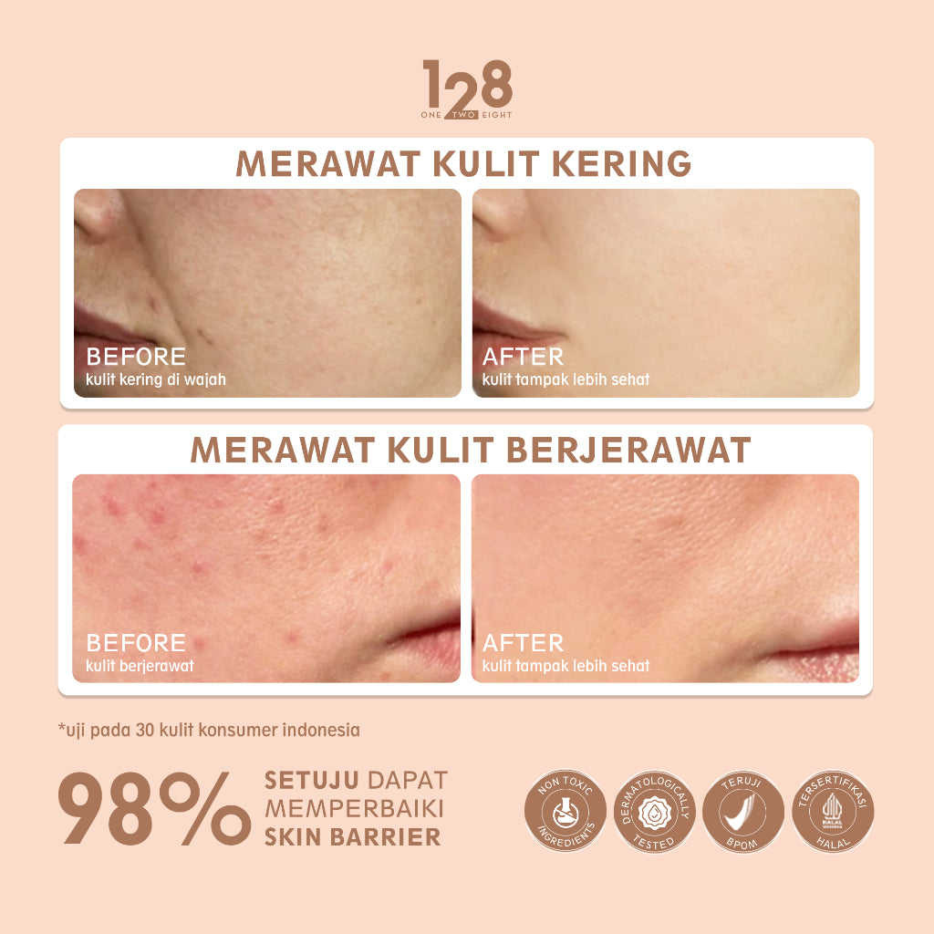 - Restores : Mengembalikan kelembapan alami kulit agar seimbang
