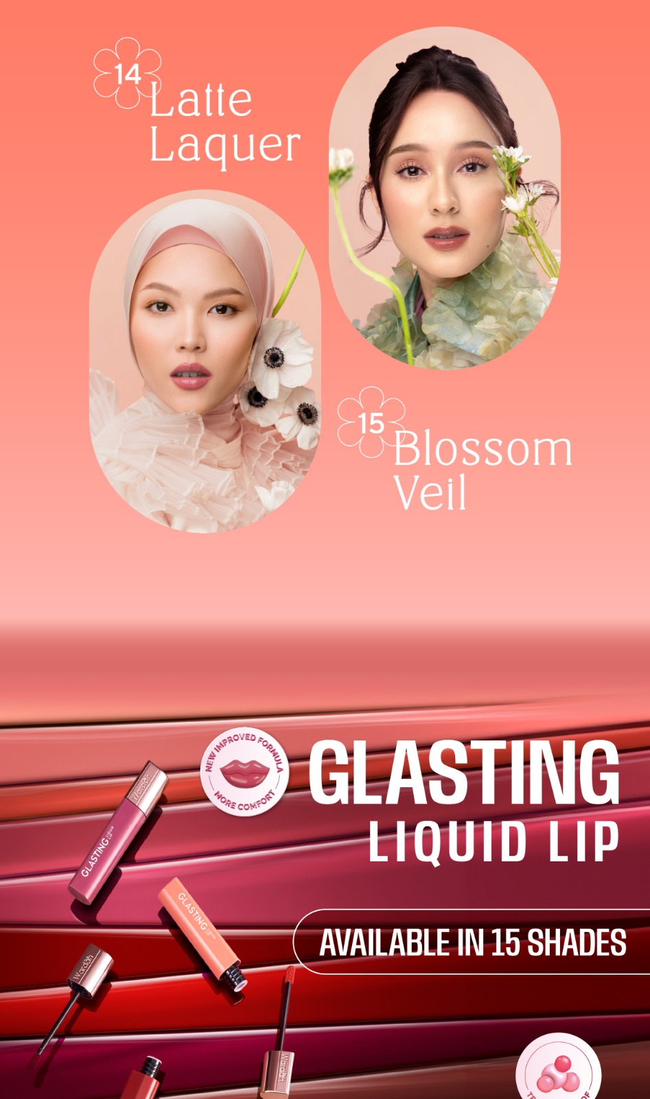 Bibir Plump Glass dengan Warna Pigmented yang Nyaman Tidak lengket, ringan dan Transferproof seharian! Didukung oleh teknologi terbaru: GLASSCUSHION dan Ceramide yang melembabkan bibir.