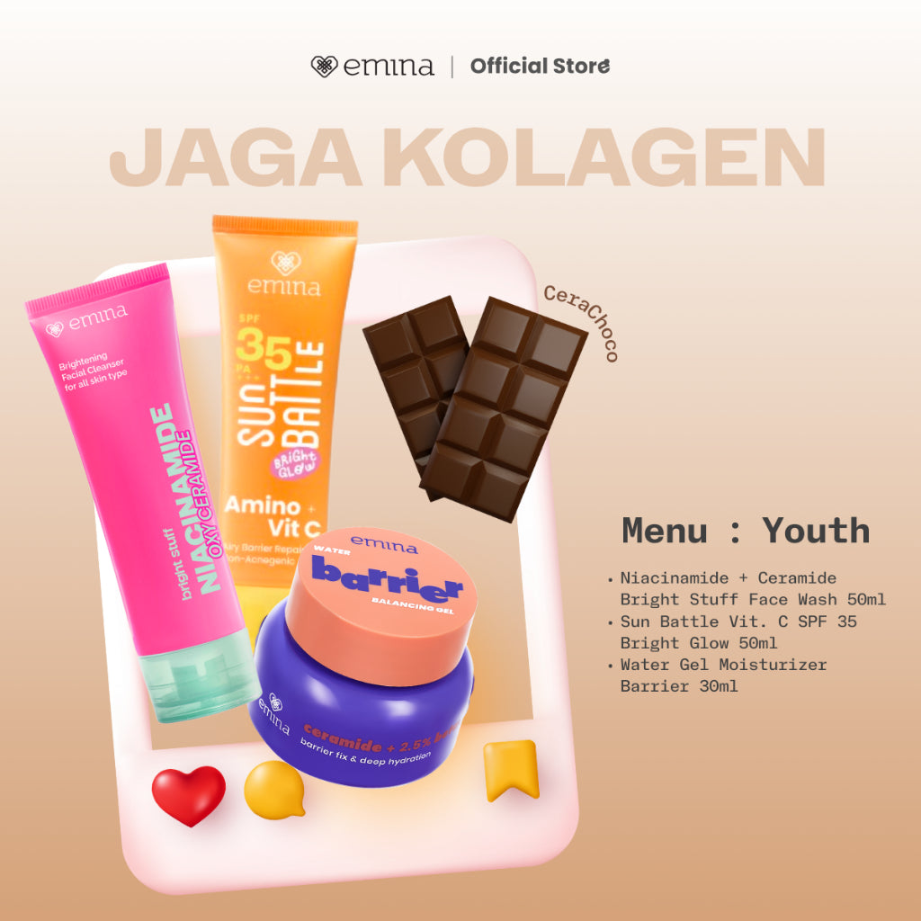 Emina Skin Diner Package 3pcs - Paket Skincare Moisturizer Serum Face Wash Sunscreen Pigmentation Brown Spots Pore Size Acne Collagen Boost