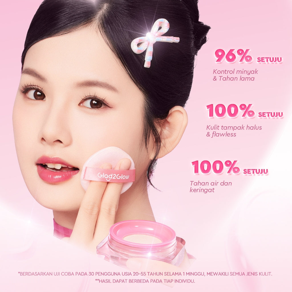 Glad2Glow 2lN1 VELVET MAKEUP SET-LOOSE POWDER+CUSHION Coverage Tinggi Second Skin Flawless Semi Matte Transferproof Tahan Lama instan Blurring Minyak Extract Air Blurry Technology