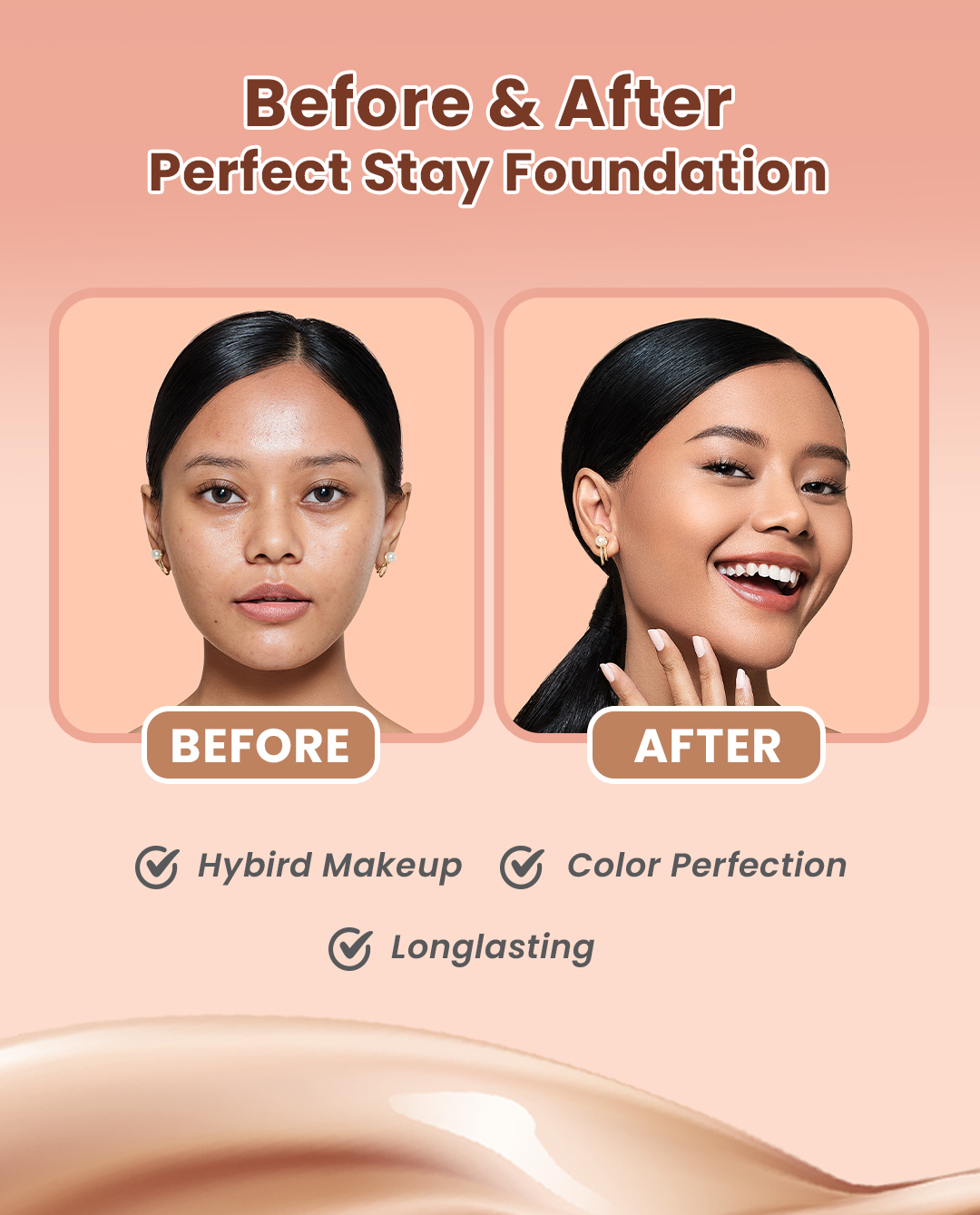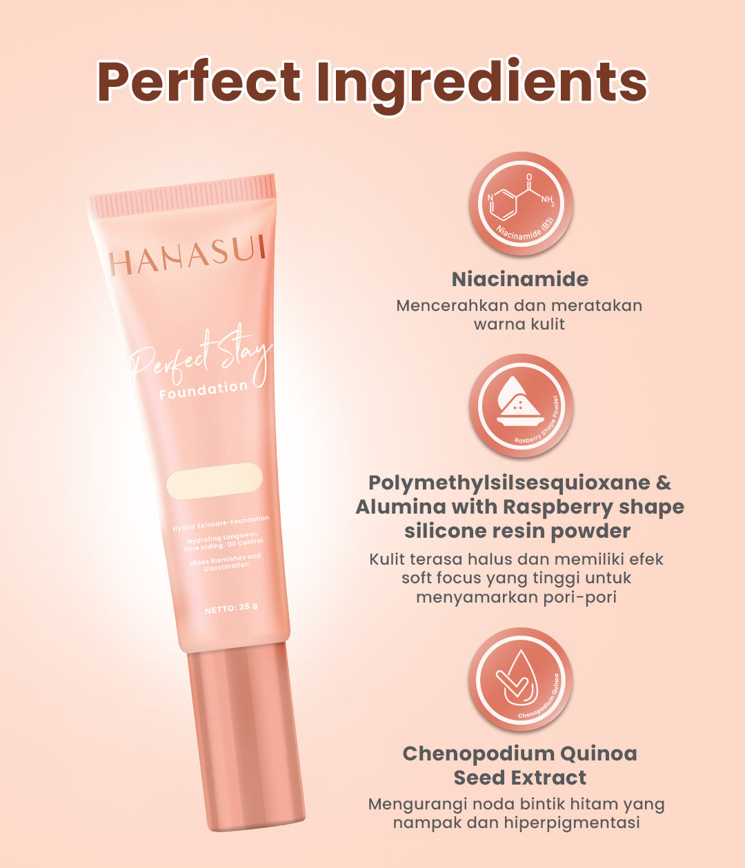 Hanasui Perfect Stay Foundation - Foundation Natural Matte Finish Menyamarkan Pori Pori Oil Control Tahan Lama