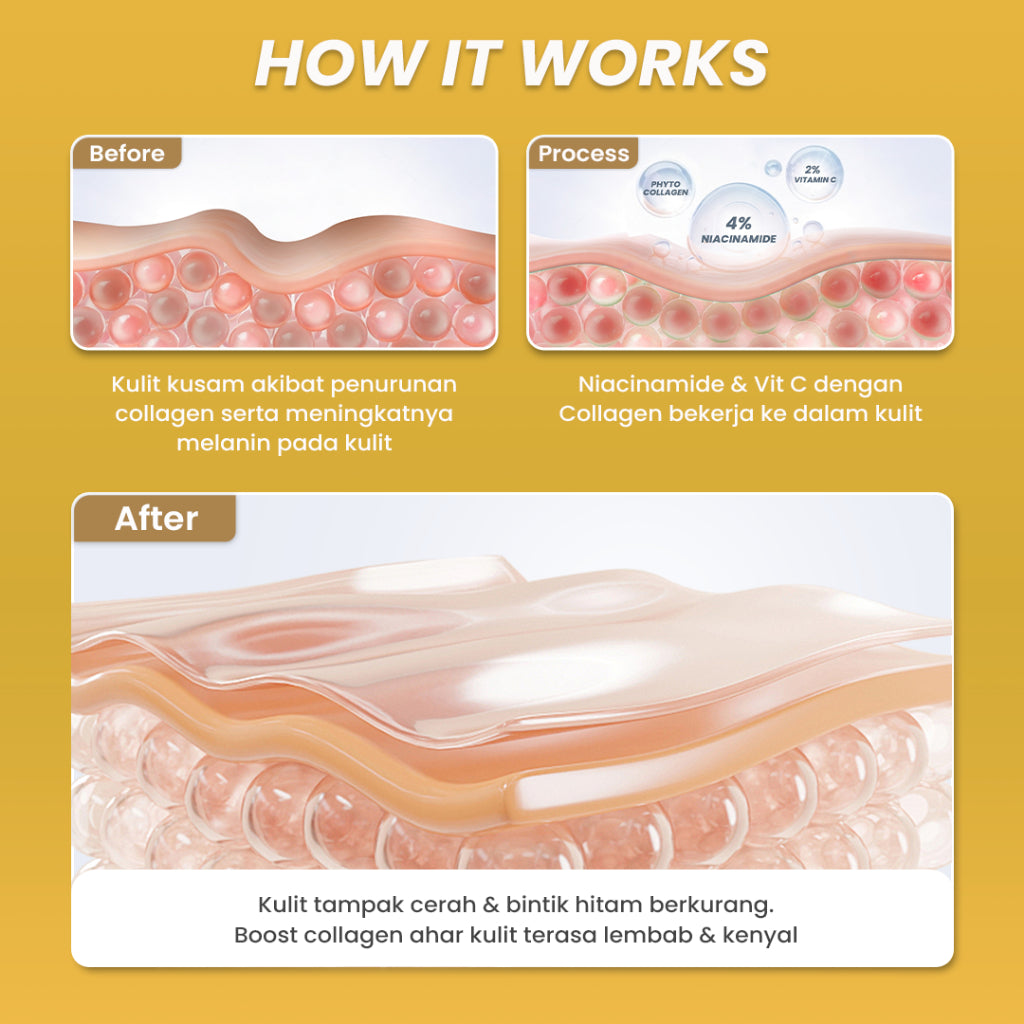 Untuk hasil yang lebih optimal, gunakan bersamaan dengan Hanasui Flawless Glow 10 dan dapat dikombinasikan dengan Vitamin C + Collagen Serum.