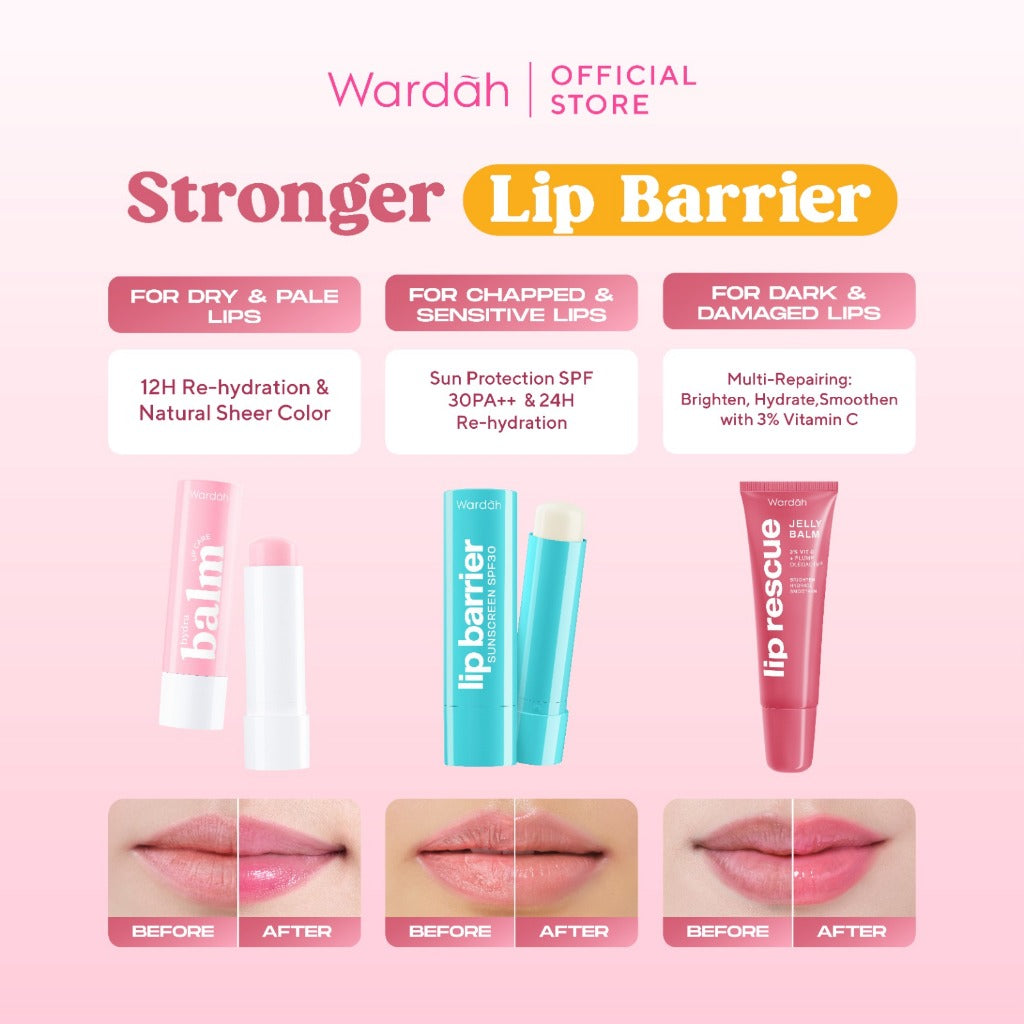 [LIMITED EDITION: 99K GET 4!] WARDAH Paket Lip Care - Hydrabalm Lip Care Peach Blossom, Lip Barrier Sunscreen SPF 30 PA+++, Lip Rescue Jelly Balm Dusty Rose FREE Rubber Keychain + BOX - Bundle Hadiah - Bundle Gifting - Bundle Self Care - Makeup