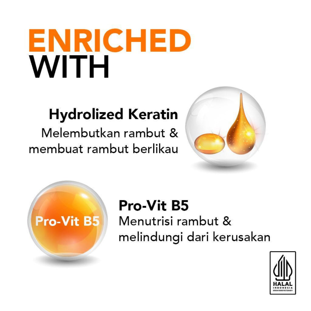 • Produk spray rambut anti-frizz ini diperkaya dengan Pro-Vitamin B5 dan Sunflower Oil.