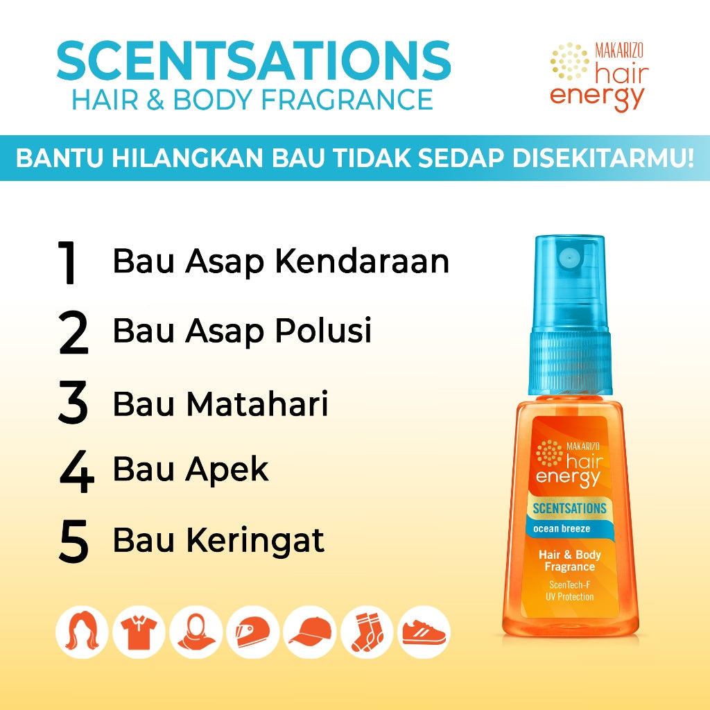 • Parfum rambut 2in1 Hair and Body yang membuat kamu tetap wangi dan segar. Gak cuma untuk rambut, Makarizo Hair Energy Scentsation juga bisa digunakan untuk badan, baju, dan hijab lho.