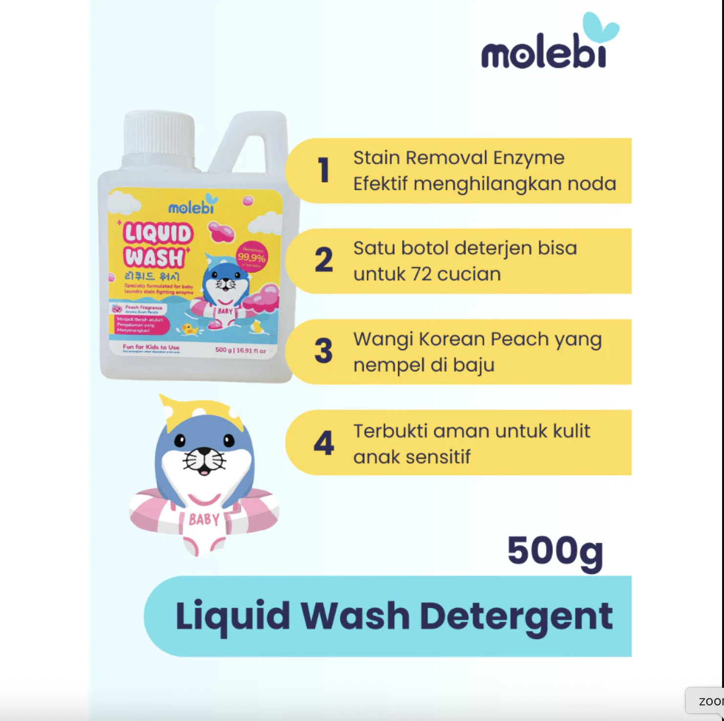 Molebi Detergen Baju Bayi / Liquid Wash Detergent 500g - Stain Fighting Enzyme, Lembut untuk Kulit Bayi