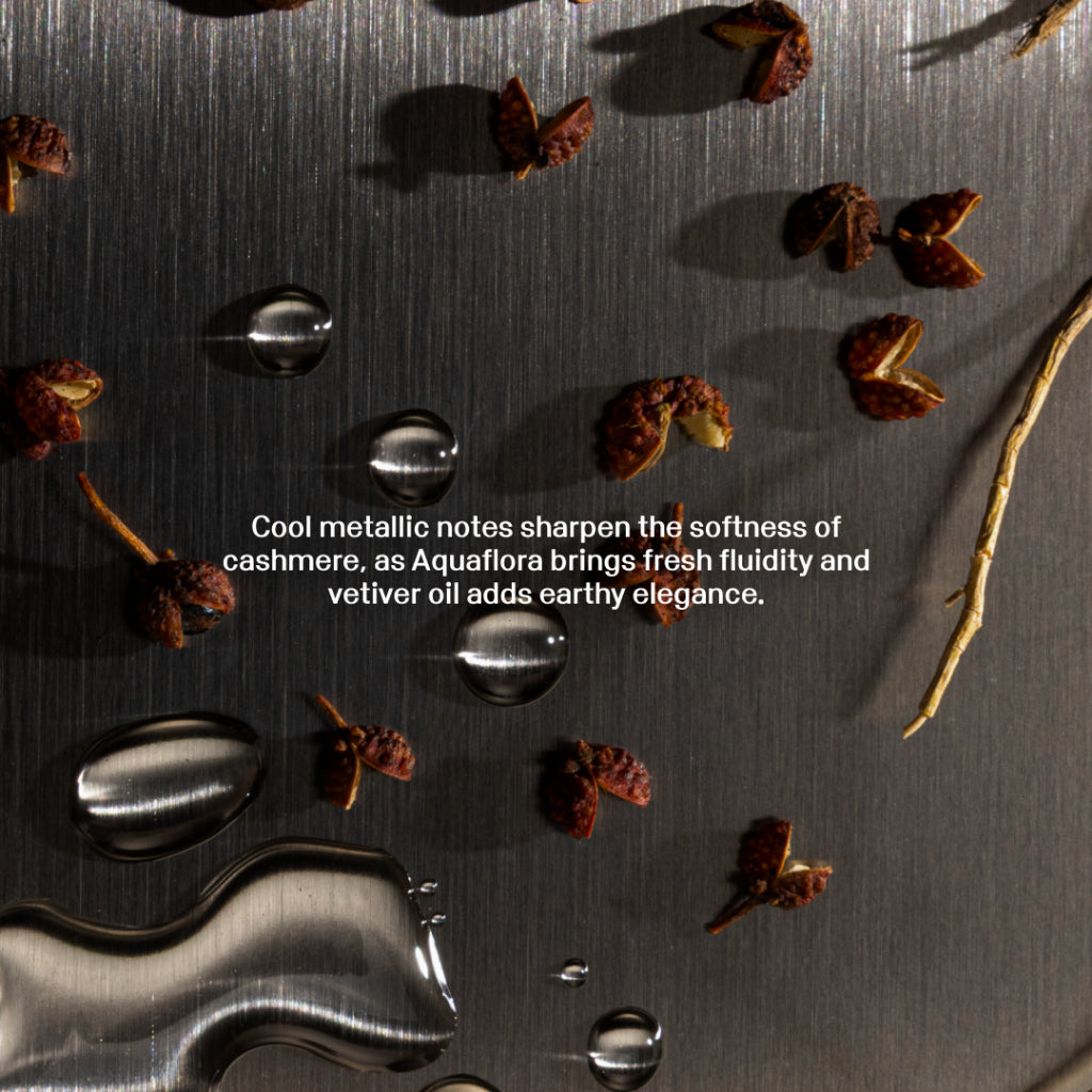 Cool metallic notes sharpen the warmth of cedarwood, creating a scent that feels precise and modern. Subtle yet distinctive, with a presence that inspires new perspectives.