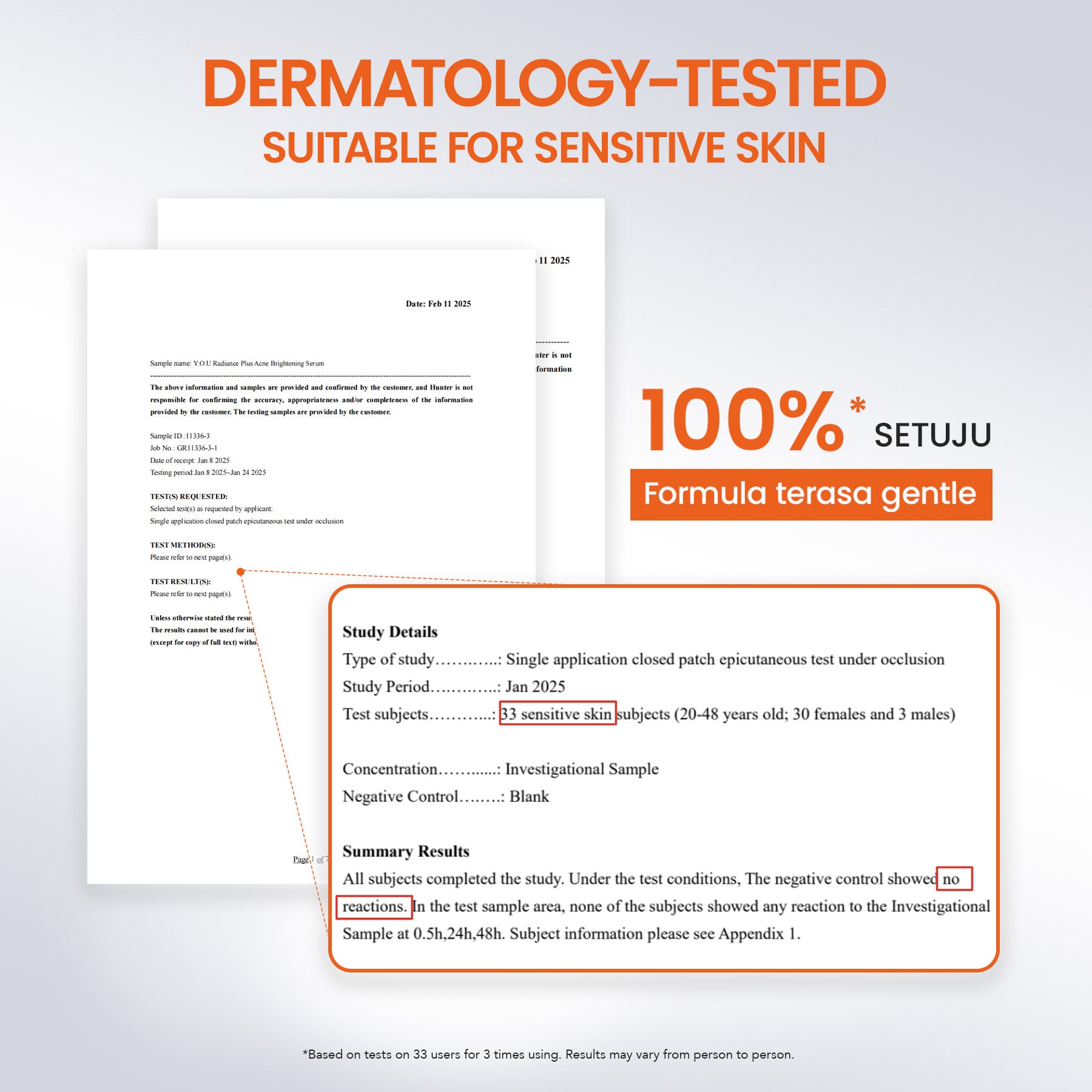- 2% Niacinamide+Vit C: Mencerahkan & meratakan warna kulit kusam, serta bantu kulit tampak lebih glowing bebas flek.