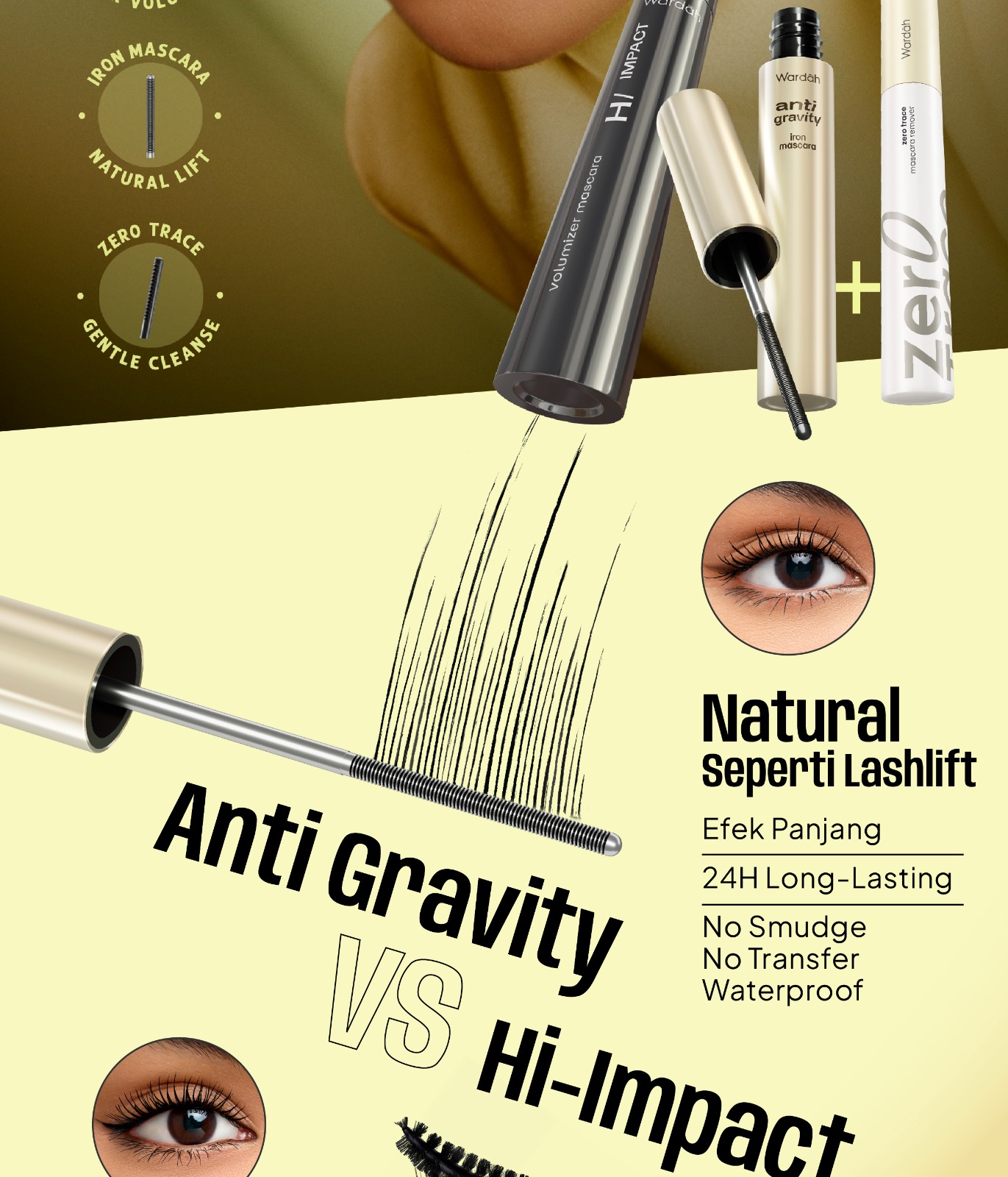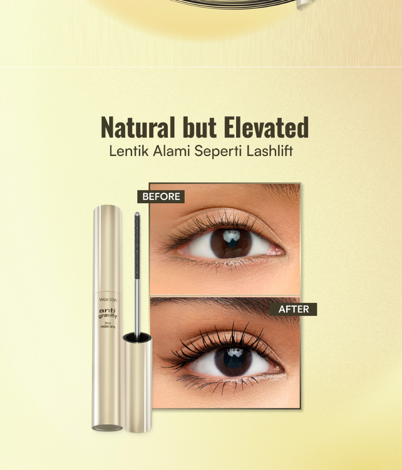 NEW! WARDAH Anti-Gravity Iron Mascara Natural Volumizing - Lengthening Mascara Lentik 24 Jam Tahan Lama, No Clumpy, Smudgeproof, Waterproof - Maskara Jigrak - No Fake Lashes - Bulu Mata Lentik Natural Ringan - Eye Makeup