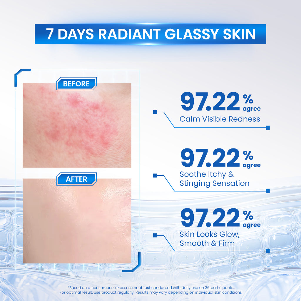 Serum dengan 1000ppm PDRN yang membantu menenangkan kemerahan, memperkuat barrier, serta formula Skin Elasticity & Wrinkle Care Complex untuk menjaga kekenyalan kulit agar tampak lebih halus dan sehat ala glass skin. Dalam 7 hari*, 97,22% pengguna merasakan berkurangnya kemerahan serta sensasi perih dan gatal pada kulit.