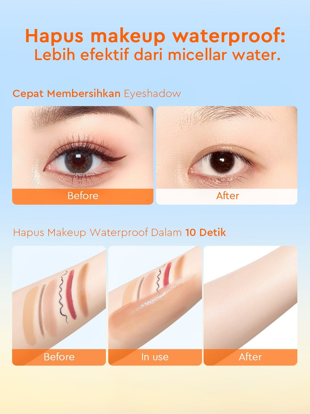 -Membersihkan kulit make-up waterproof dan non waterproof