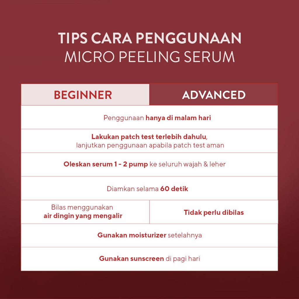 NEW! Micro Peeling Serum yang diformulasikan dengan aktif CELL POWER bekerja hingga sel target untuk mengangkat sel kulit mati, mencerahkan kulit, menyamarkan tampilan pori, dan sekaligus melawan timbulnya jerawat.