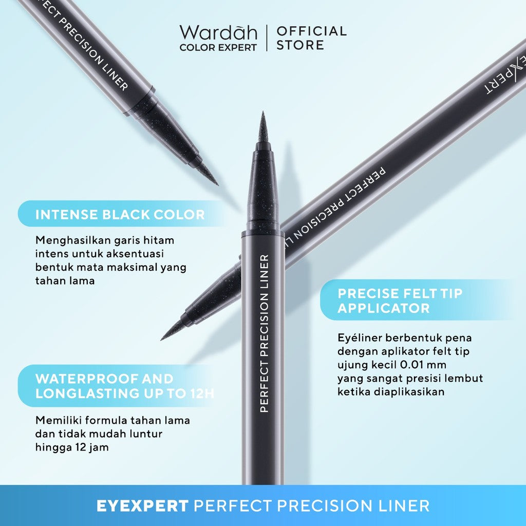 Wardah EyeXpert Perfect Precision Liner - Eyeliner Waterproof Warna Hitam dengan Aplikator Presisi Mudah Digunakan dan Lembut-Tahan Lama Hingga 12 Jam