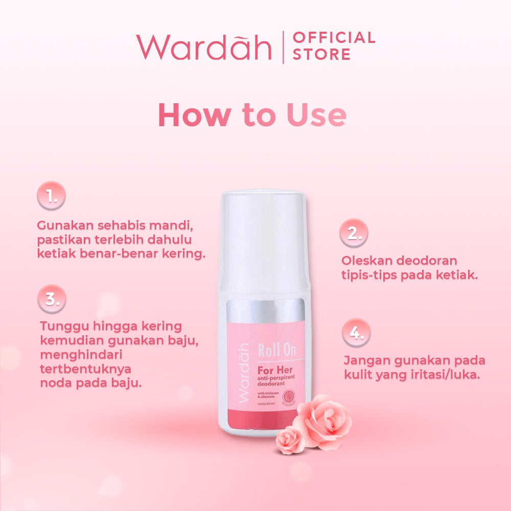Wardah Roll On For Her 60 ml - Deodoran Halal Non Alkohol yang Mampu Mencegah Bau Badan Seharian - Nyaman di Kulit, Tidak Lengket dan Cepat Kering