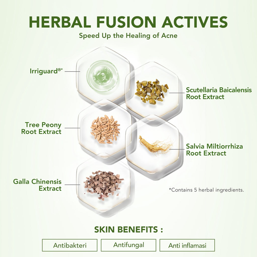 YOU AcnePlus series diperkaya dengan kandungan Centella Asiatica dan Herbal Fusion Actives yang diketahui dapat membantu menenangkan kulit, dan memperkuat skin barrier untuk mencegah munculnya jerawat baru. Diformulasikan dengan pH-Balanced Formula yang menyesuaikan dengan kondisi alami kulit (pH 4.5-5.5), sehingga menjaga kulit tetap sehat dan dapat melawan bakteri penyebab jerawat.