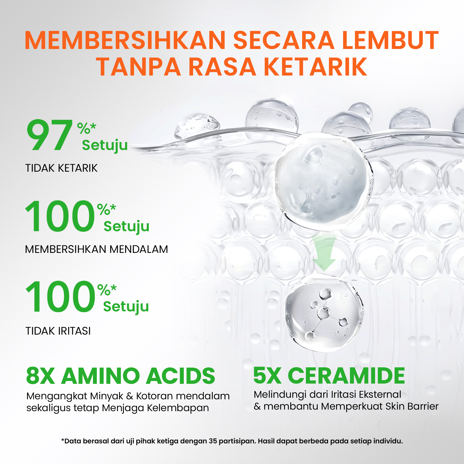 - Aman dan lembut untuk kulit berjerawat karena telah diformulasikan dengan low pH & bebas SLS/SLES