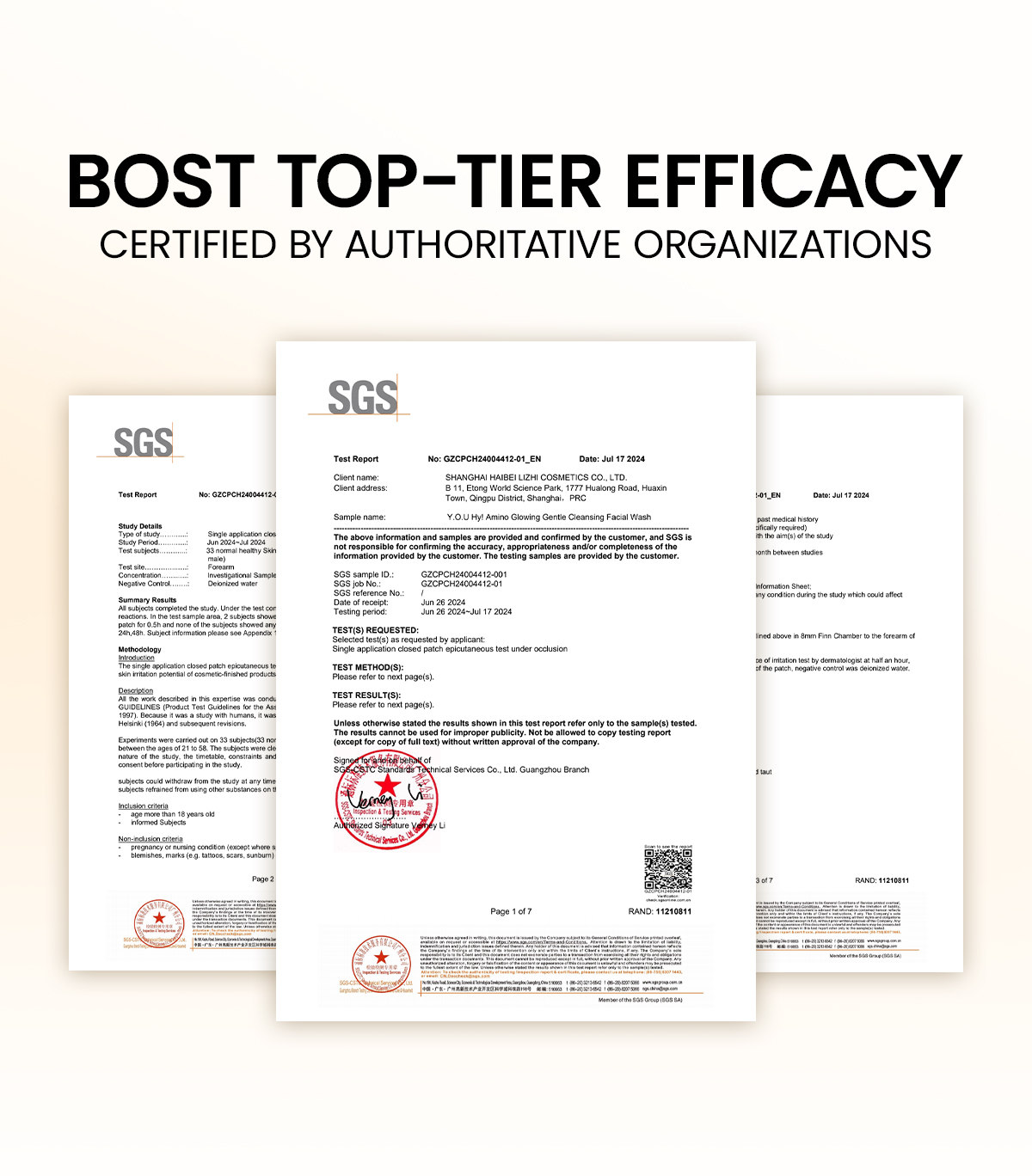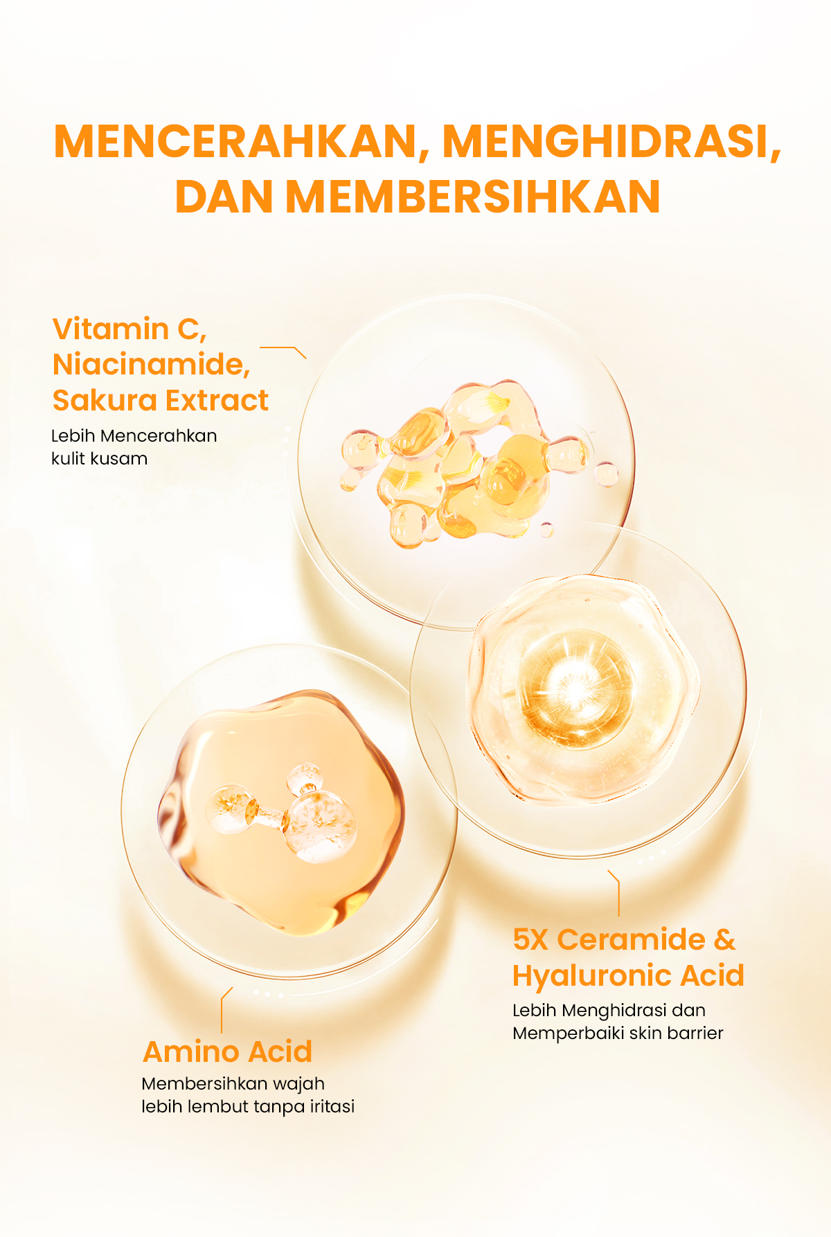 [New Upgraded Formula] YOU Hy! Amino Glowing Gentle Cleansing Facial Wash kini hadir dengan formula baru yang mengandung Niacinamide, Vitamin C, dan Sakura. Membersihkan wajah Anda dengan lembut, membuat kulit Anda terlihat lebih cerah dan halus.
