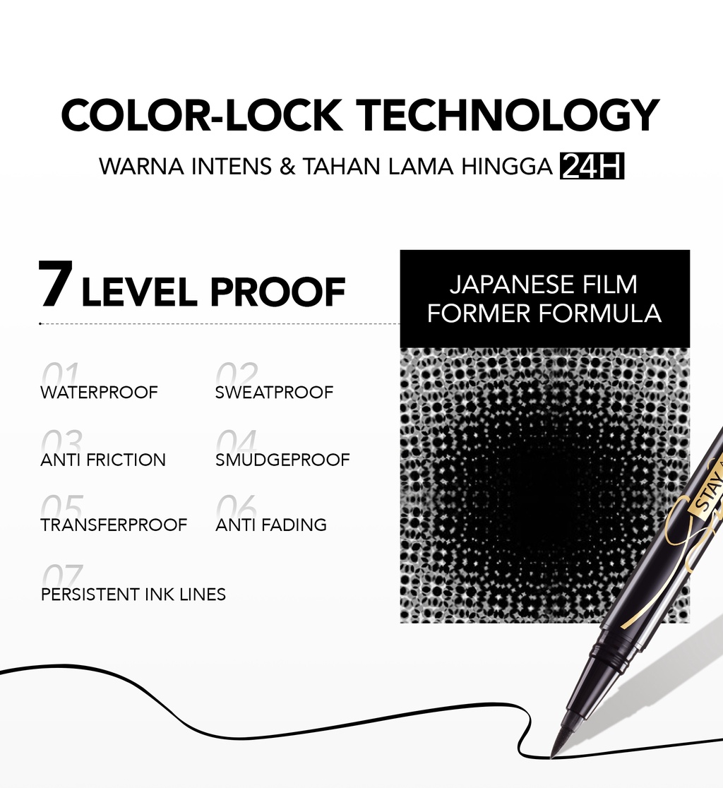 Film Former dari Jepang membuat formulanya waterproof, sweatproof, anti friction, smudgeproof, transferproof, anti fading, dan persistent ink lines