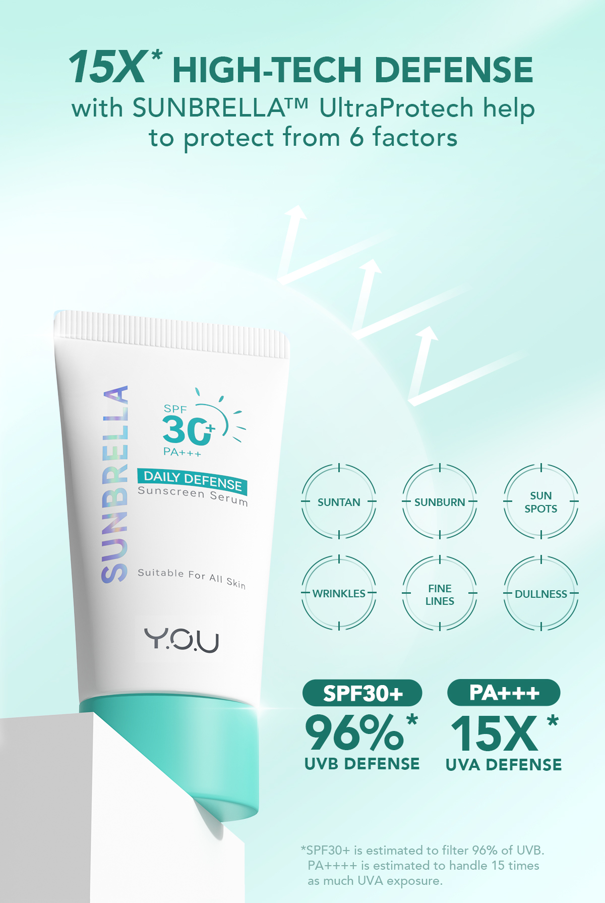 YOU Sunbrella Daily Defense Sunscreen Serum SPF30 Tabir Surya UVA UVB Blue Light Lightweight Skincare Dry Skin [Best Selling]