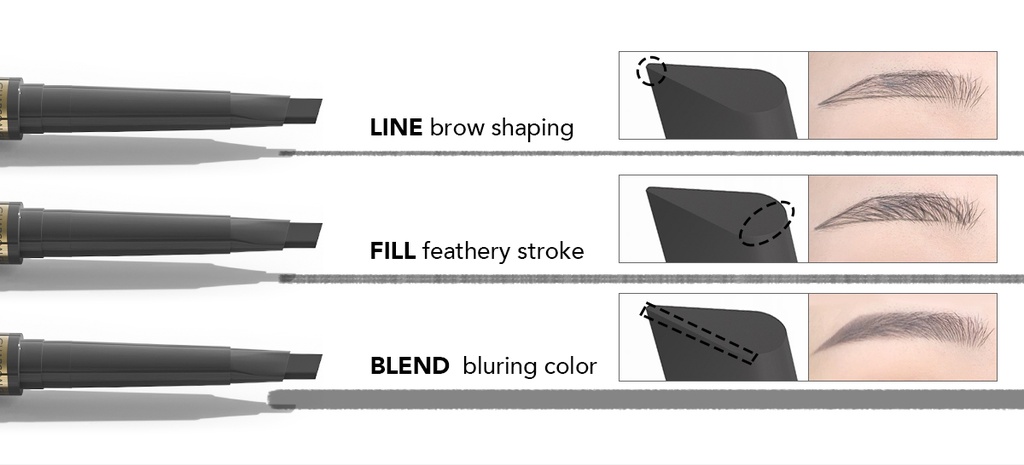 Ujung pensil berbentuk teardrop memudahkan dalam membentuk & mengisi alis